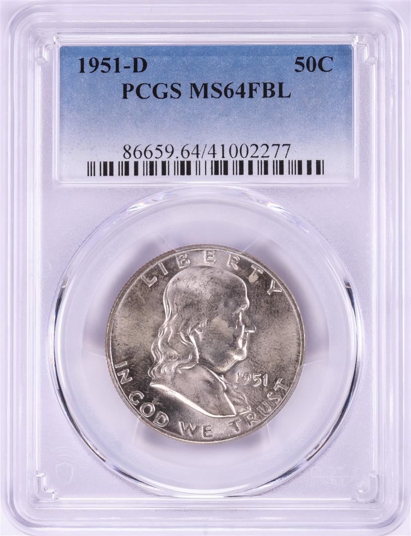 One 1951-D Franklin Half Dollar Coin PCGS MS64FBL. PCGS Graded.
