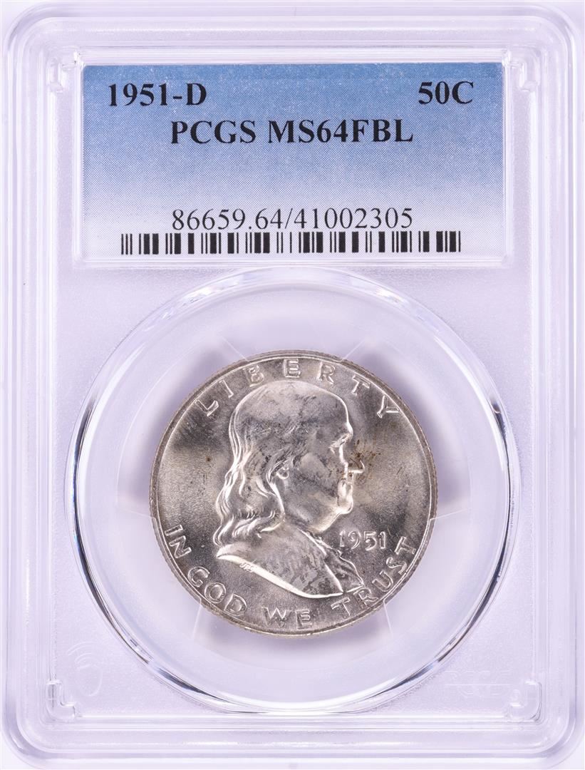 One 1951-D Franklin Half Dollar Coin PCGS MS64FBL. PCGS Graded.