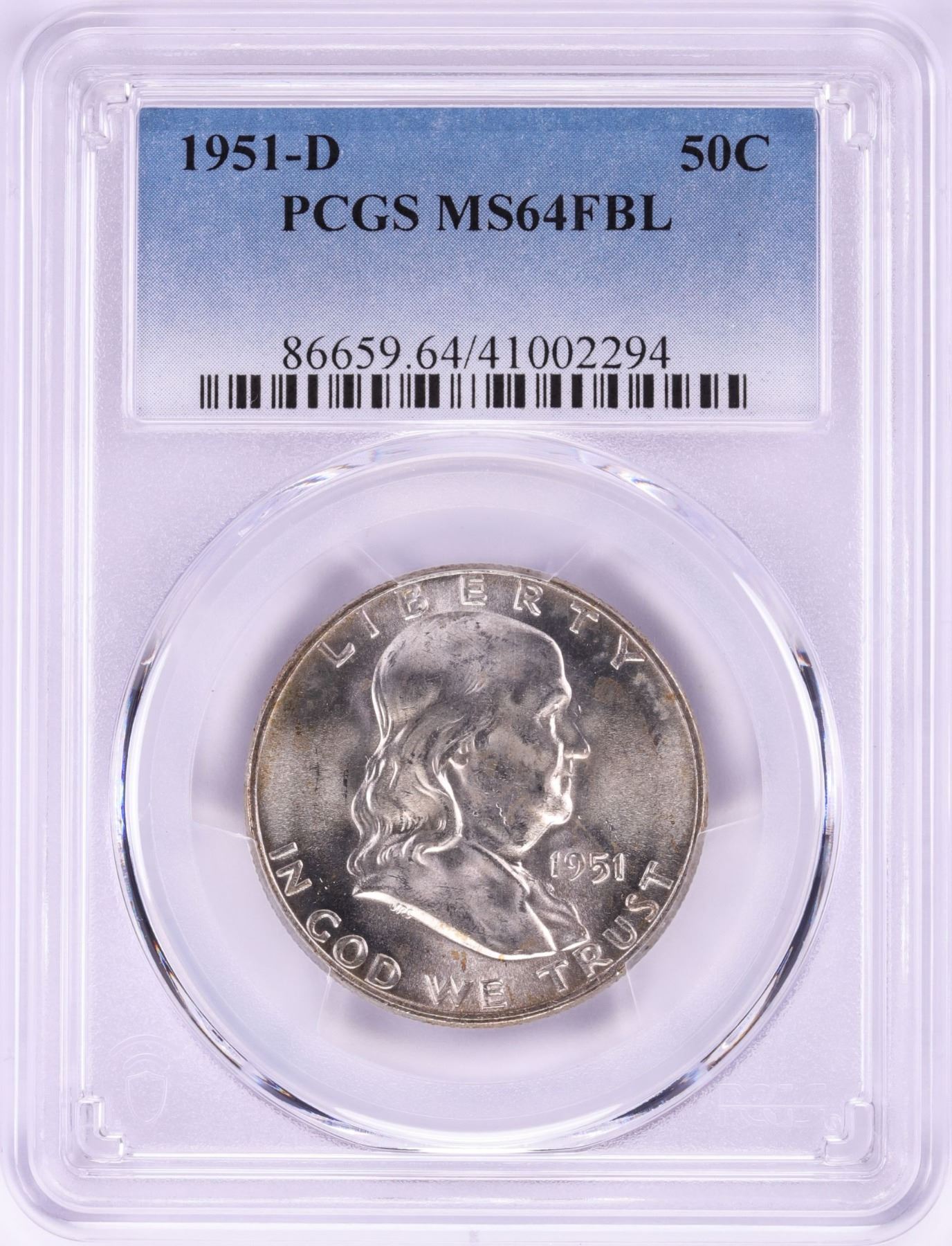 One 1951-D Franklin Half Dollar Coin PCGS MS64FBL.