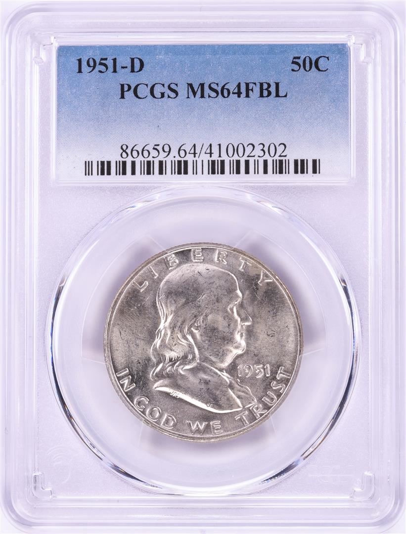 One 1951-D Franklin Half Dollar Coin PCGS MS64FBL. PCGS Graded.