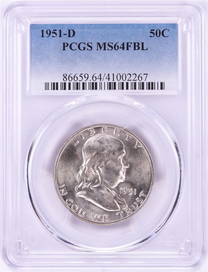 One 1951-D Franklin Half Dollar Coin PCGS MS64FBL. PCGS Graded.