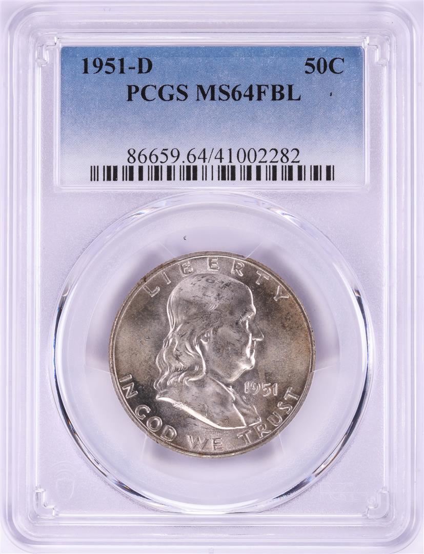 One 1951-D Franklin Half Dollar Coin PCGS MS64FBL. PCGS Graded.