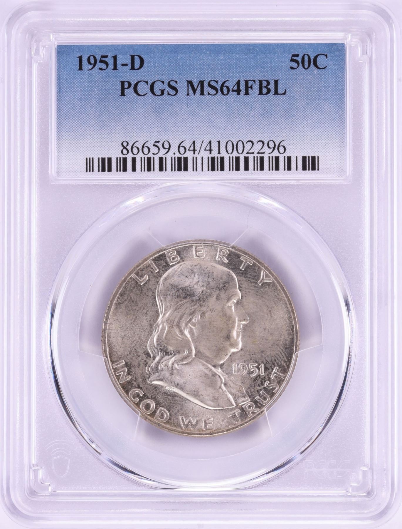 One 1951-D Franklin Half Dollar Coin PCGS MS64FBL.