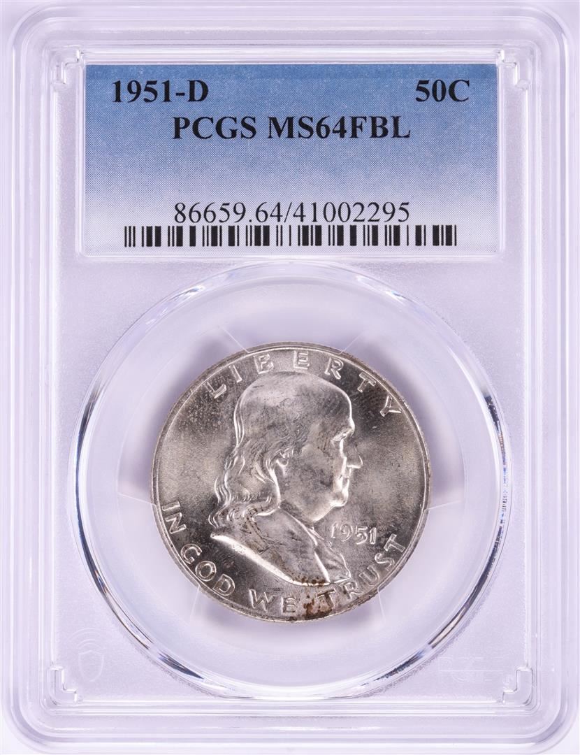 One 1951-D Franklin Half Dollar Coin PCGS MS64FBL. PCGS Graded.