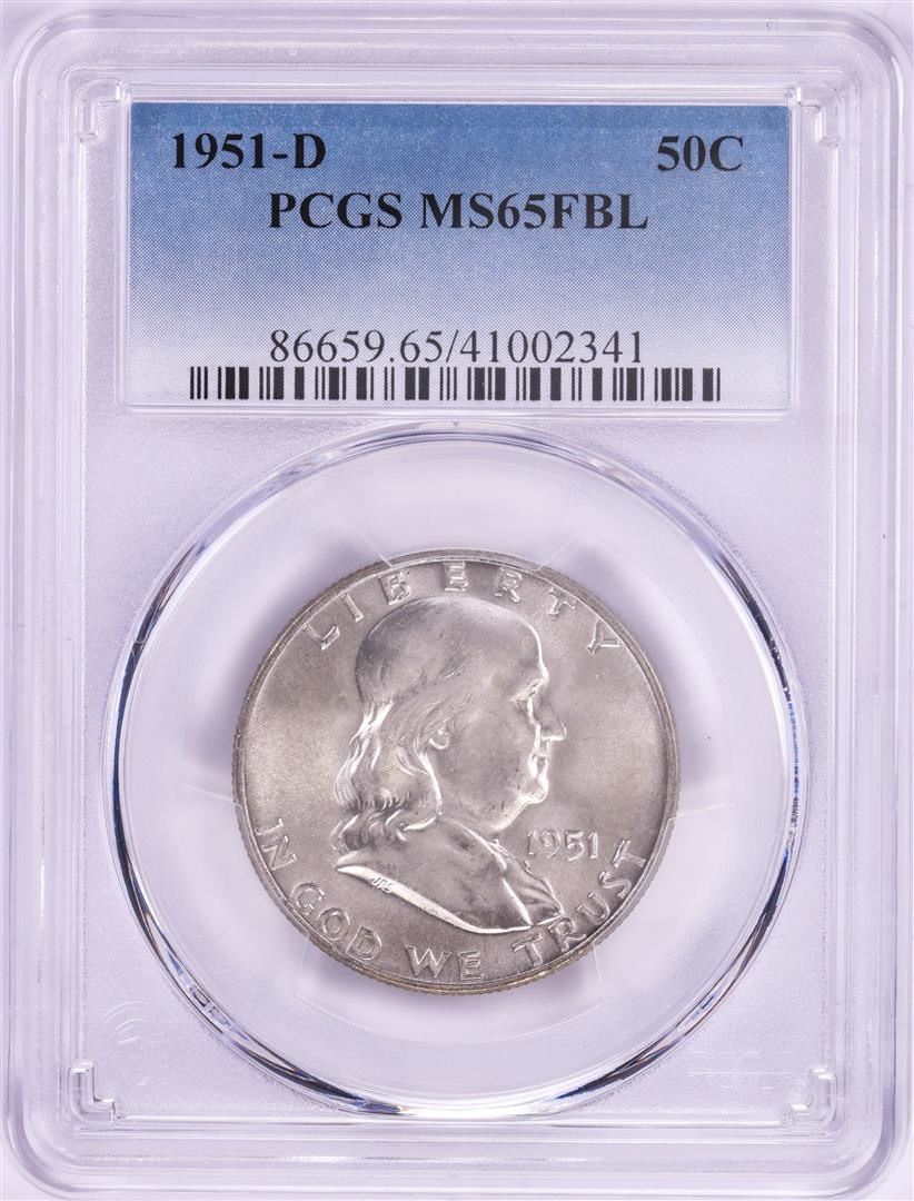 One 1951-D Franklin Half Dollar Coin PCGS MS65FBL. PCGS Graded.
