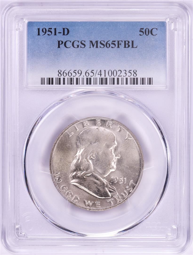One 1951-D Franklin Half Dollar Coin PCGS MS65FBL. PCGS Graded.