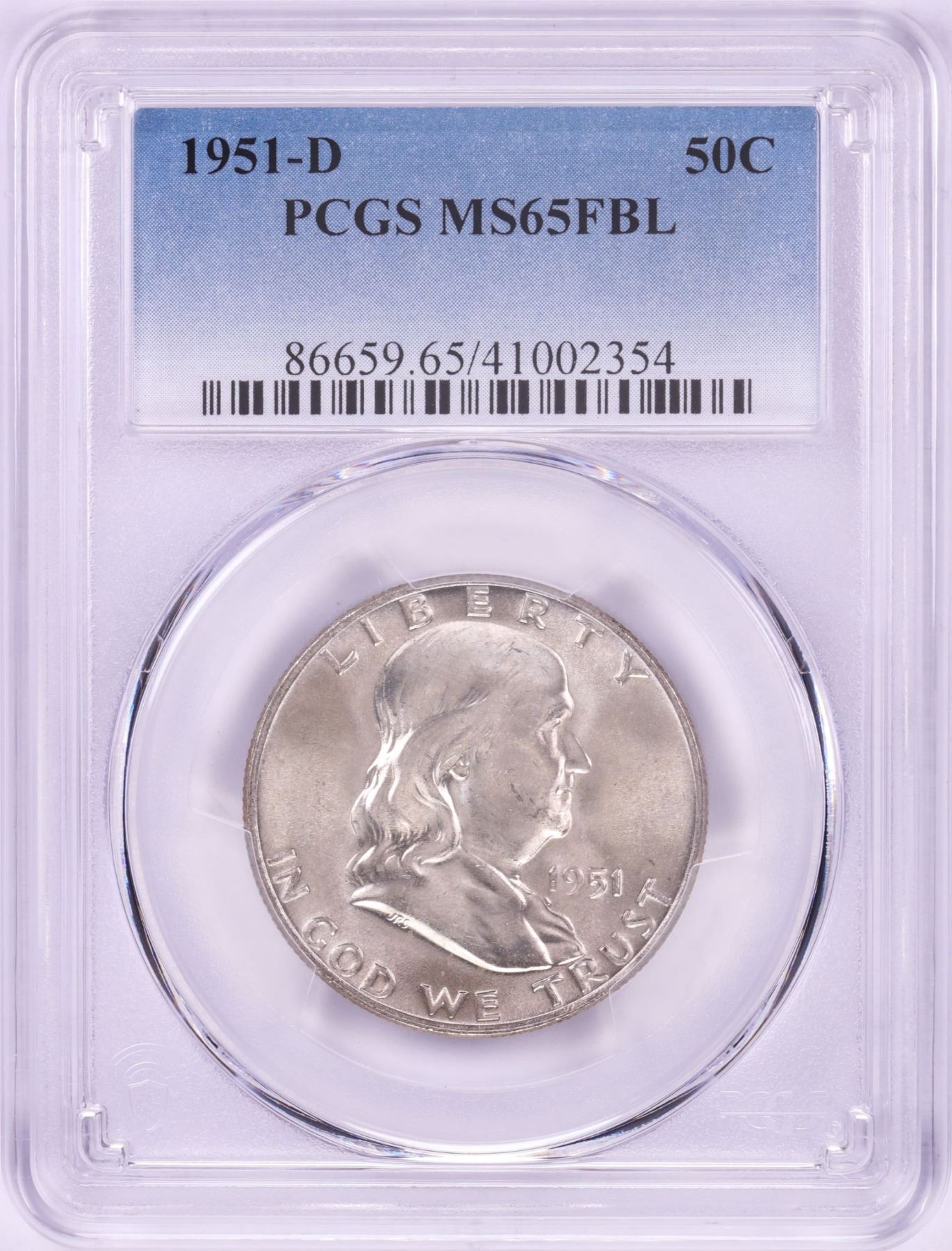 One 1951-D Franklin Half Dollar Coin PCGS MS65FBL.