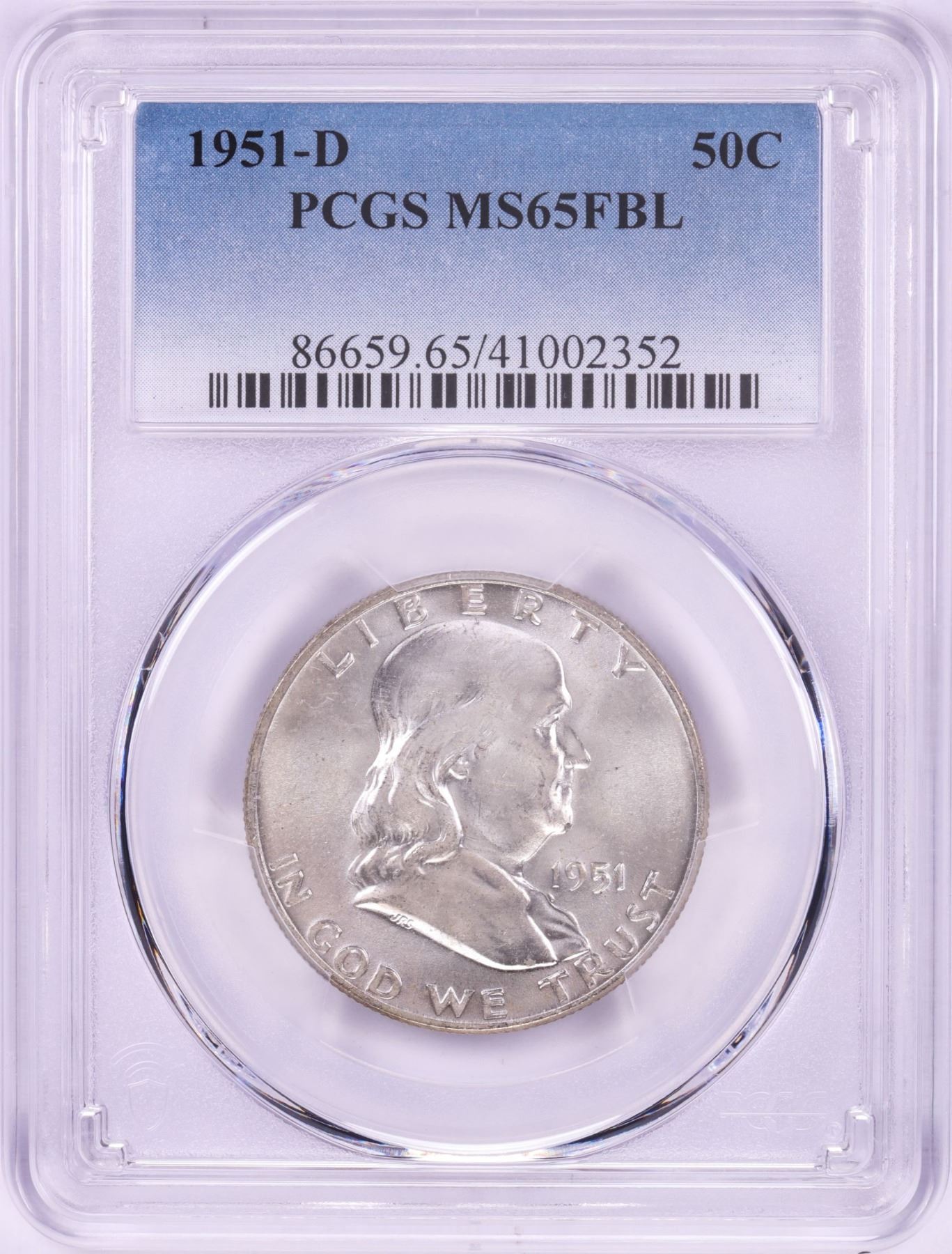 One 1951-D Franklin Half Dollar Coin PCGS MS65FBL.