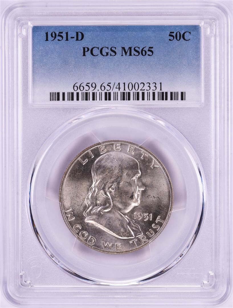 One 1951-D Franklin Half Dollar Coin PCGS MS65. PCGS Graded.