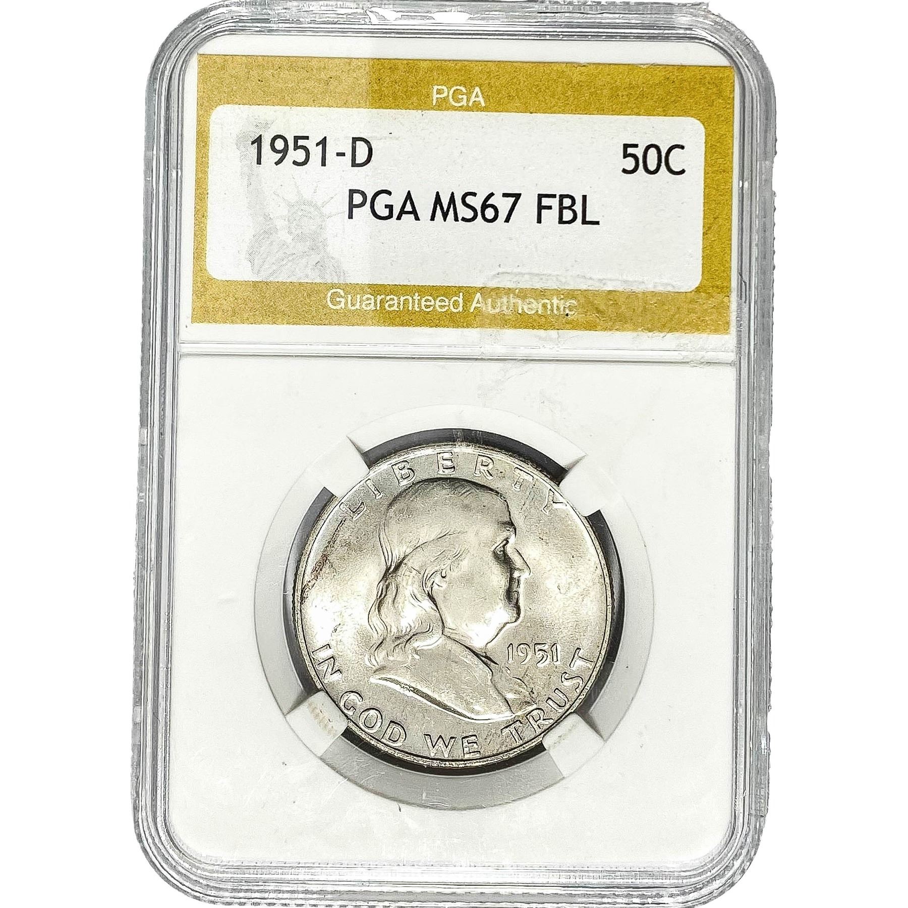 1951-D Franklin Half Dollar PGA MS67 FBL