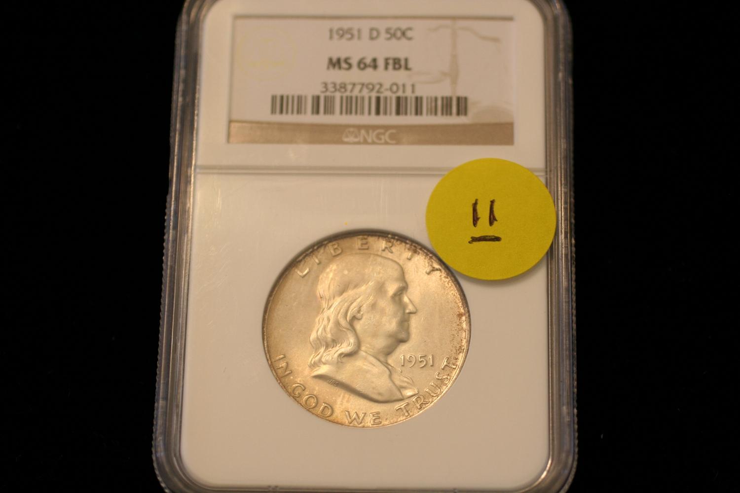 1951-D Franklin Half NGC MS64 FBL