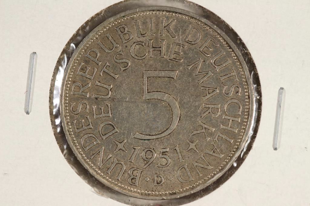 1951-D GERMAN SILVER 5 MARKS .2250 OZ. ASW