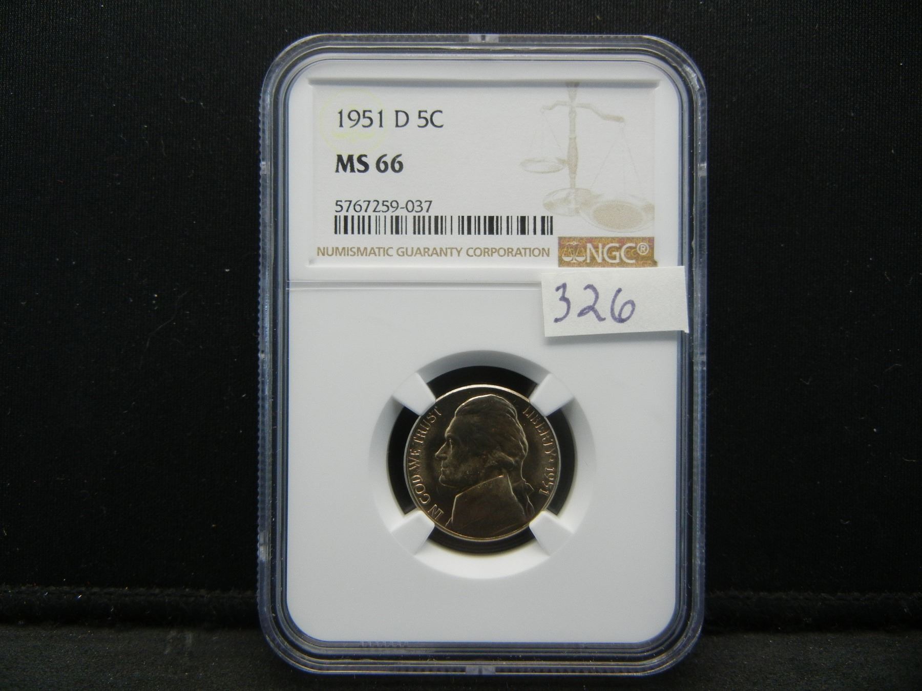 1951 D Jefferson Nickel NGC MS66 Tough Date