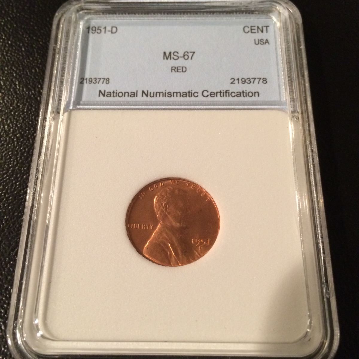 1951-D Lincoln Cent NNC MS67 Red $585 Value