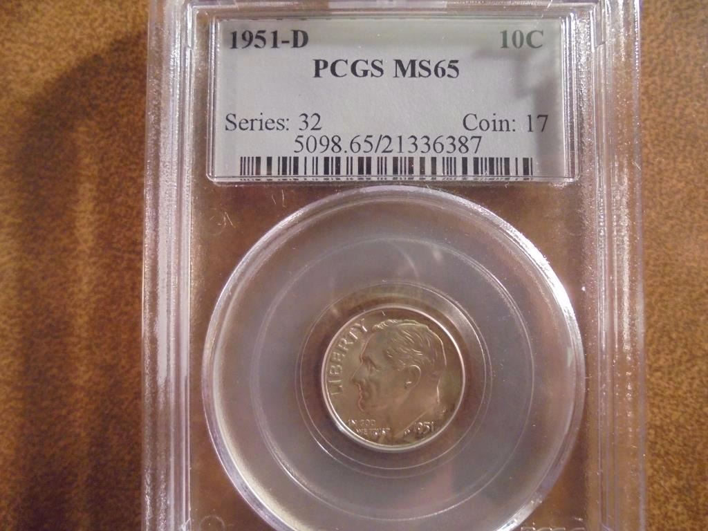 1951-D SILVER ROOSEVELT DIME PCGS MS65
