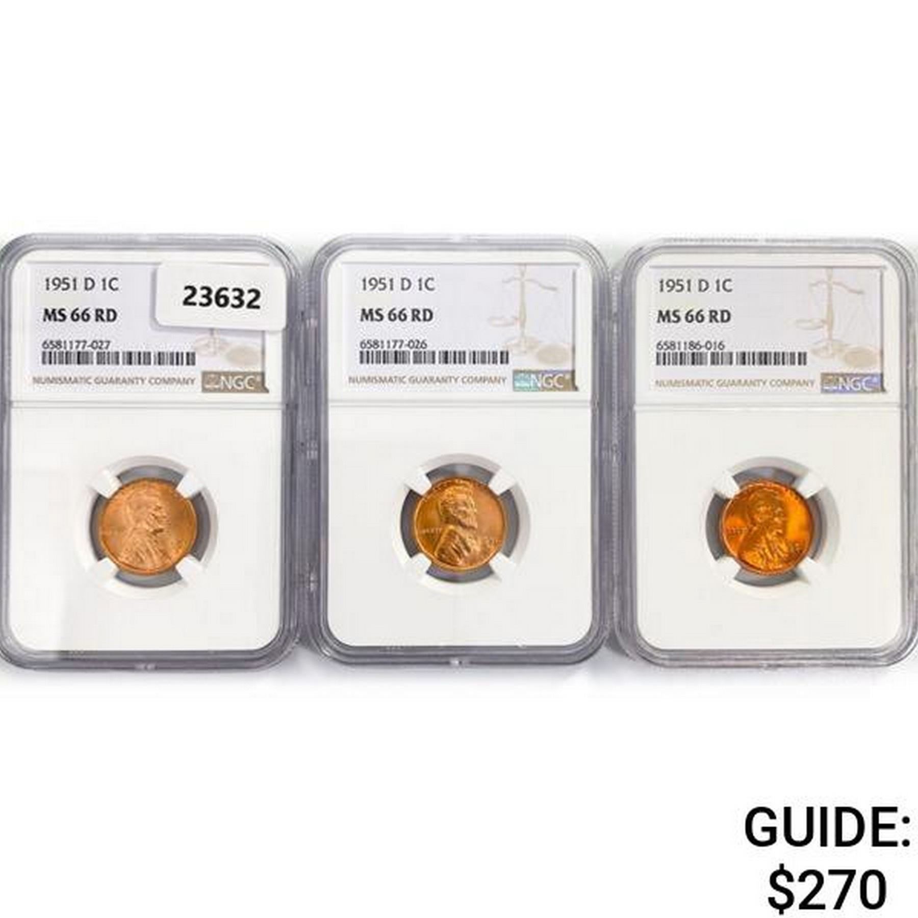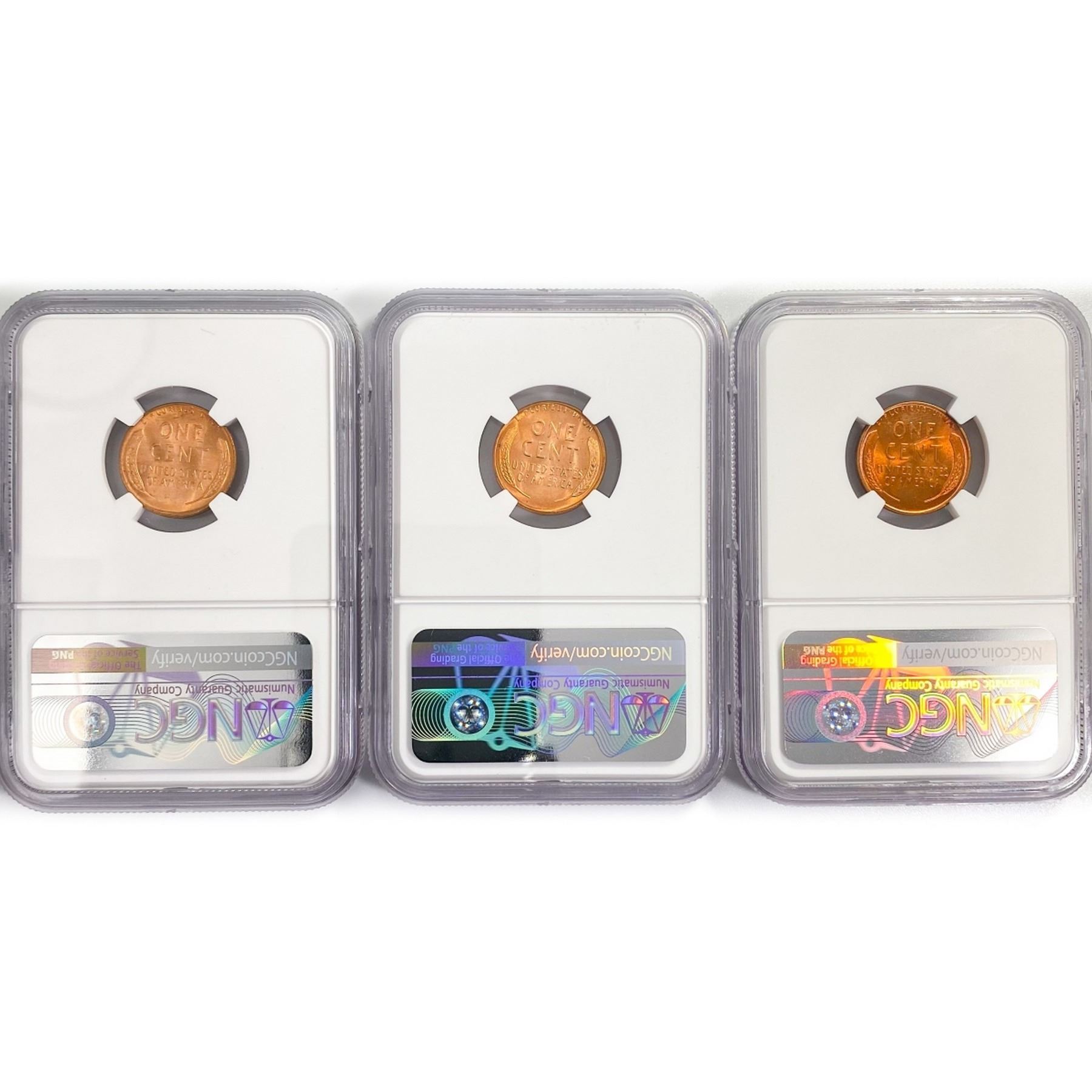 1951-D Set [3] Wheat Cent NGC MS66 RD
