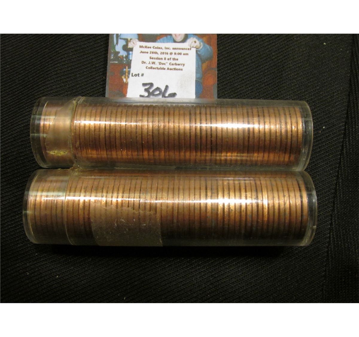 1951 D Uncirculated, but with some carbon Specks on a few of the pieces & 1954 P AU Rolls of U.S. Wheat Cents. (100 coins total).