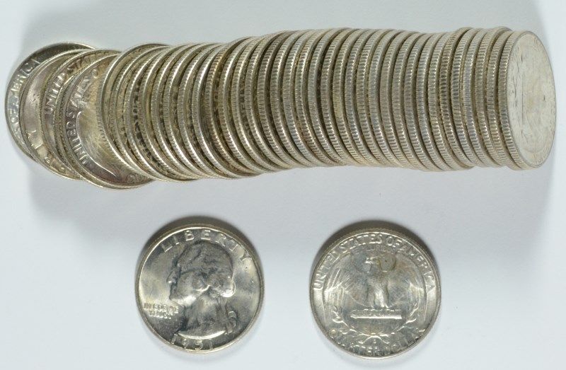1951-D WASHINGTON QUARTER ROLL ( 40 ) COINS, GEM BU ORIGINAL!!