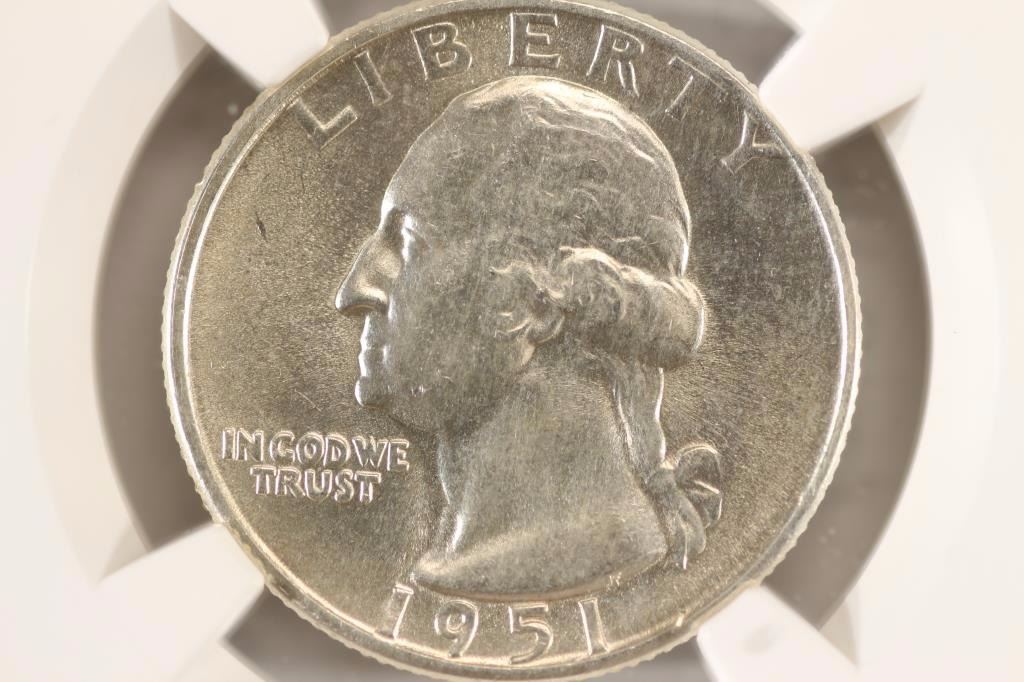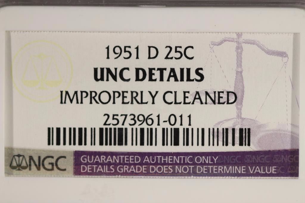 1951-D WASHINGTON SILVER QUARTER NGC UNC DETAILS
