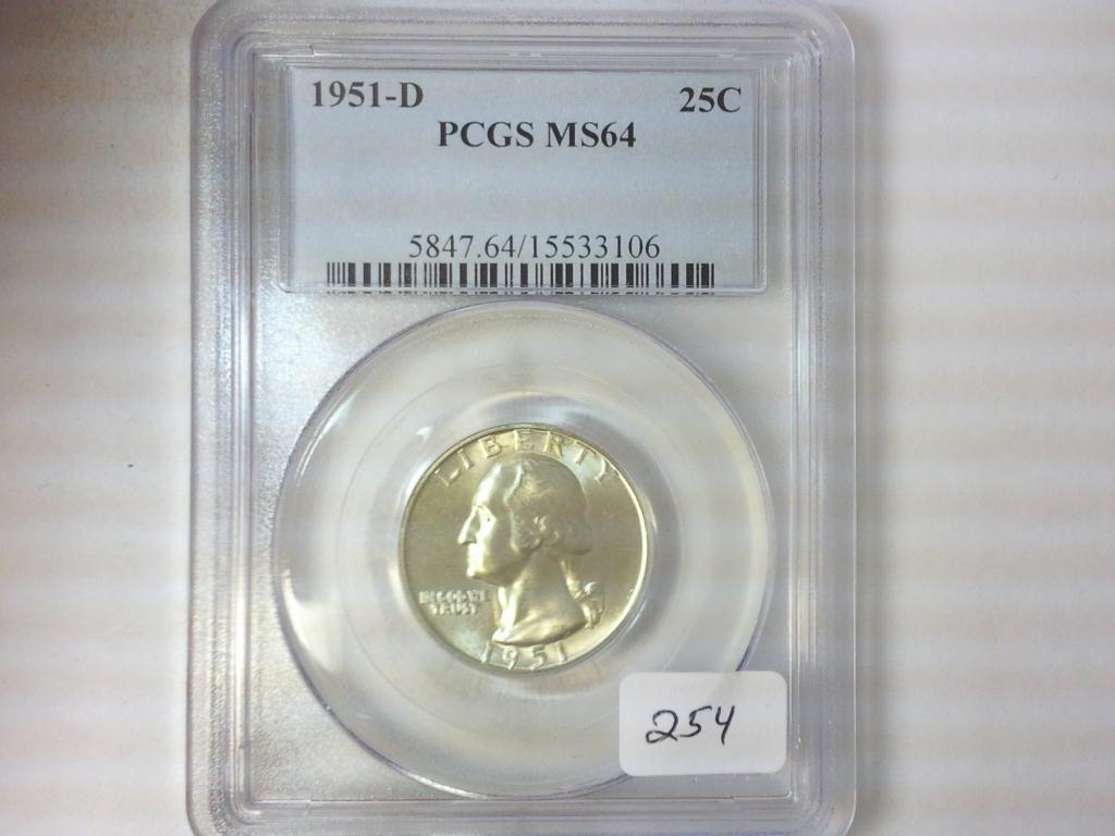 1951-D WASHINGTON SILVER QUARTER PCGS MS64