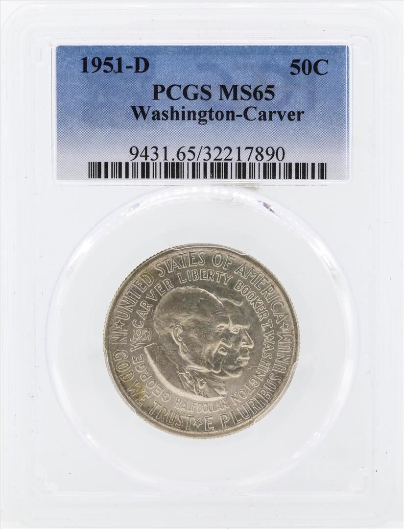 One 1951-D Washington-Carver Commemorative Half Dollar Coin PCGS Graded MS65. PCGS Graded.