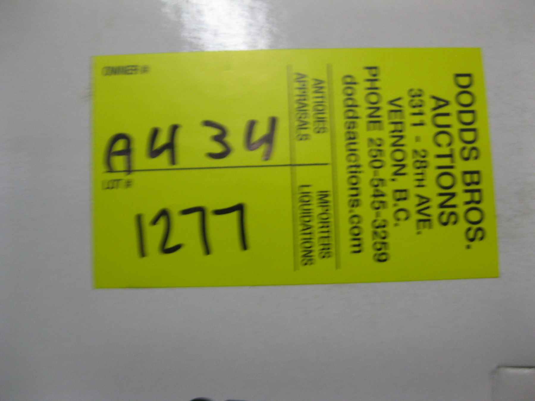Attendance at the auction preview, or removal of purchased lots by purchaser/bidders and guests is done at their sole risk. Dodds Auction assumes no risk or liability, statutory, common law or otherwise whatsoever for the safety of those attending at the auction premises.