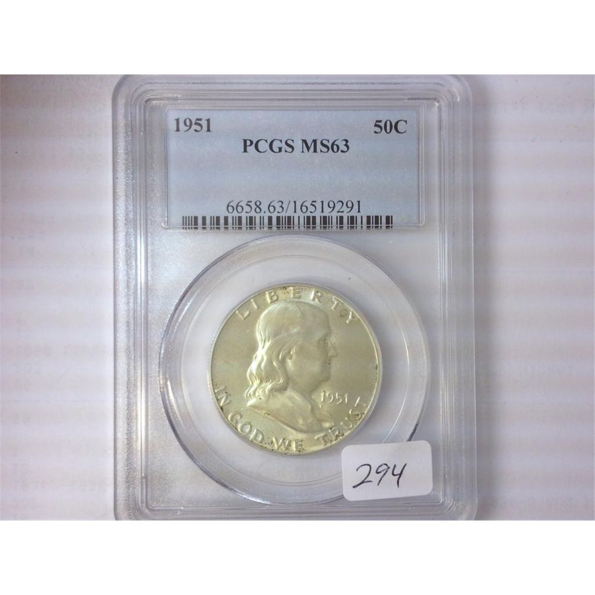 1951 FRANKLIN HALF DOLLAR PCGS MS63