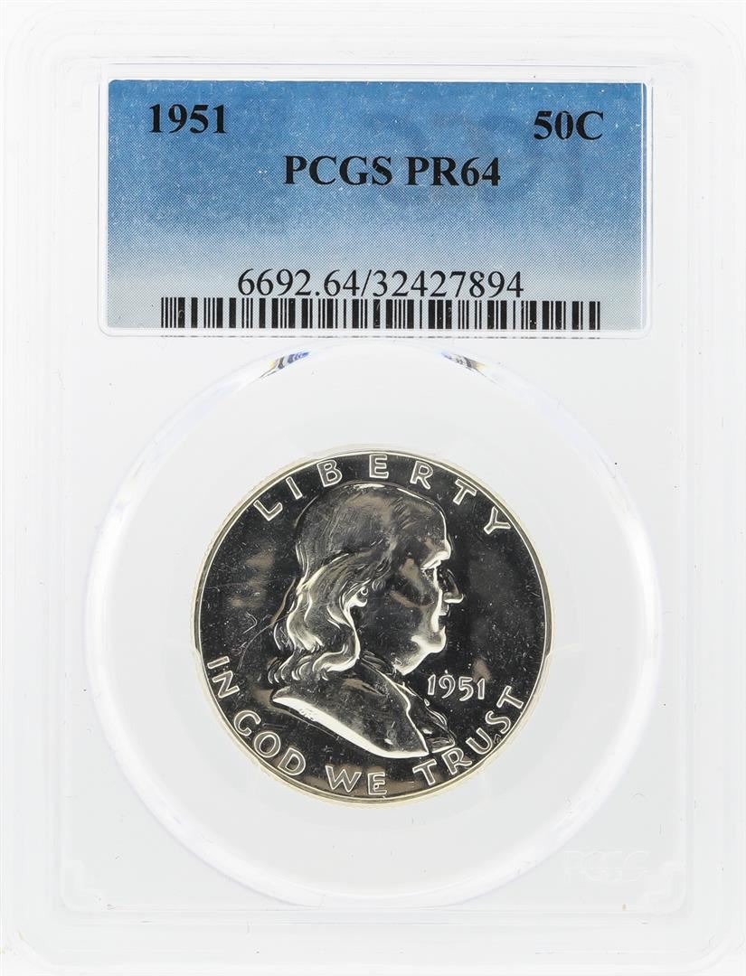 One 1951 Franklin Half Dollar Coin PCGS Graded PR64. PCGS Graded.