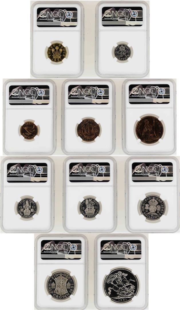 One 1951 Great Britain (10) Coin Proof Set NGC Graded PF63-66. NGC Certified.