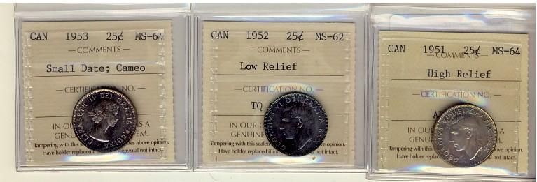 1951 HR MS64, 1952 LR MS62 & 1953 SD MS64 Cameo. Lot of 3 coins all ICCS certified