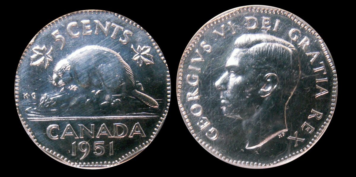 1951 High Relief 5¢ PCGS MS-65 Brilliant with full luster. Excellent strike with clean fields and nice mirror surfaces.