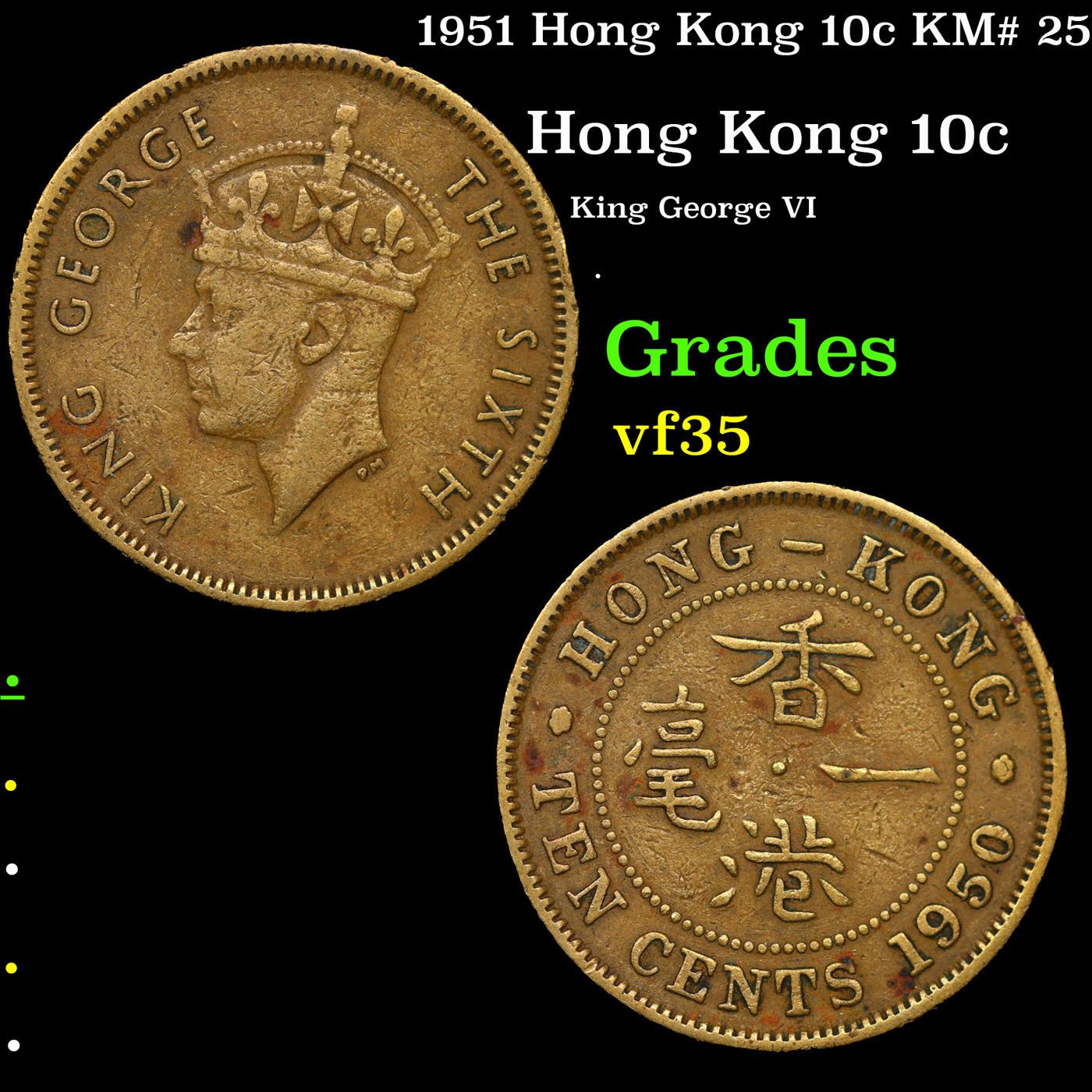 1951 Hong Kong 10c KM# 25 Grades vf++.
