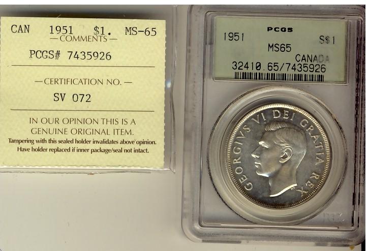1951 ICCS/PCGS MS65, brilliant and lustrous.