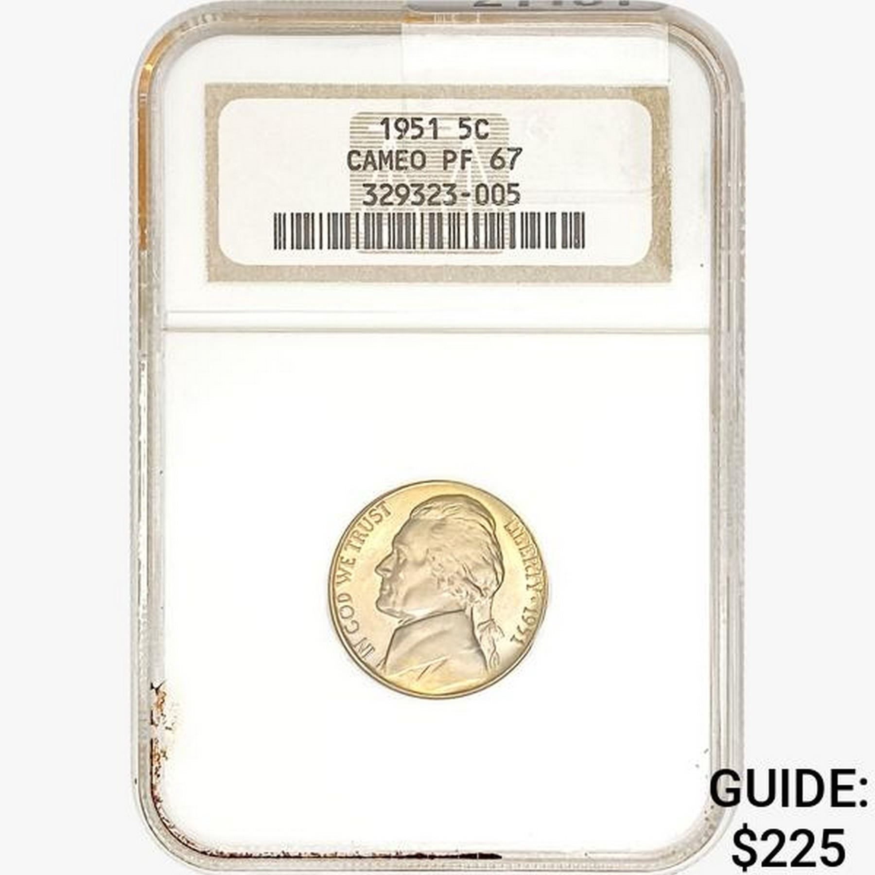 1951 Jefferson Nickel NGC PF67 Cameo