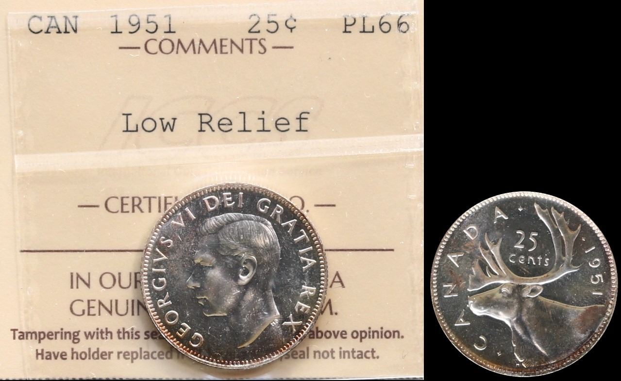 1951 Low Relief 25¢ ICCS Superb Gem Proof-Like-66 Great fields with reflectives surfaces