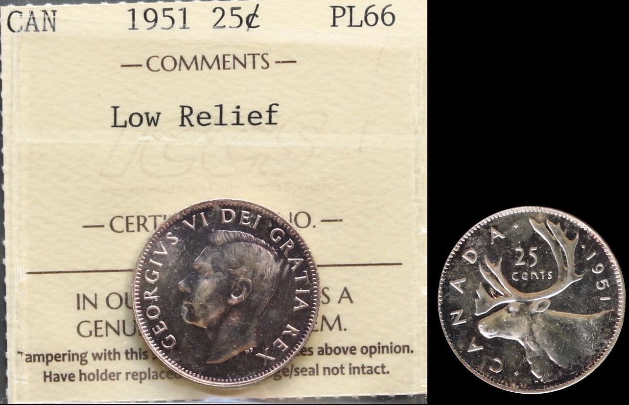 1951 Low Relief 25¢ ICCS Superb Gem Proof-Like-66 Great fields with reflectives surfaces