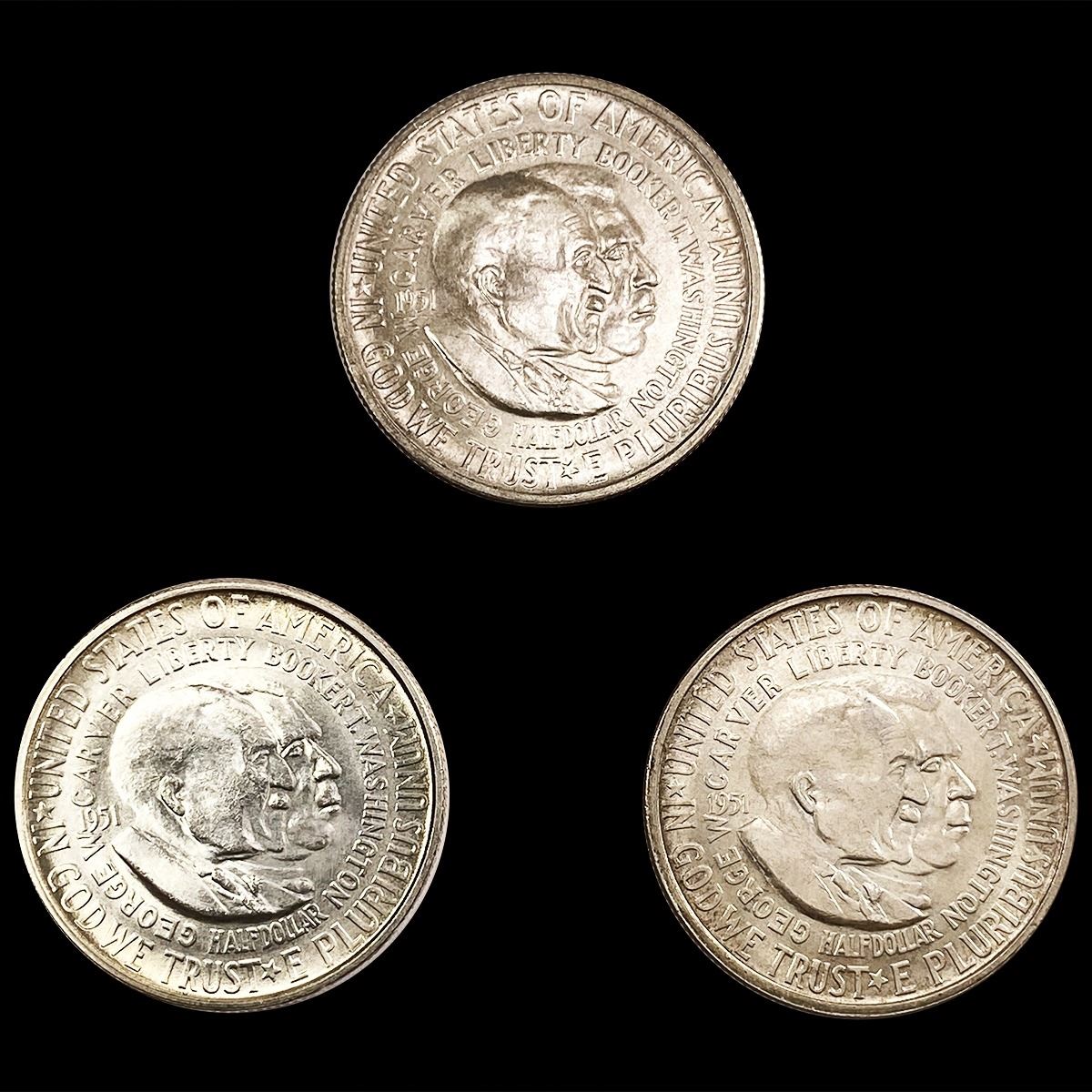 1951 PDS (3) Wash Carver Half Dollars CHOICE BU