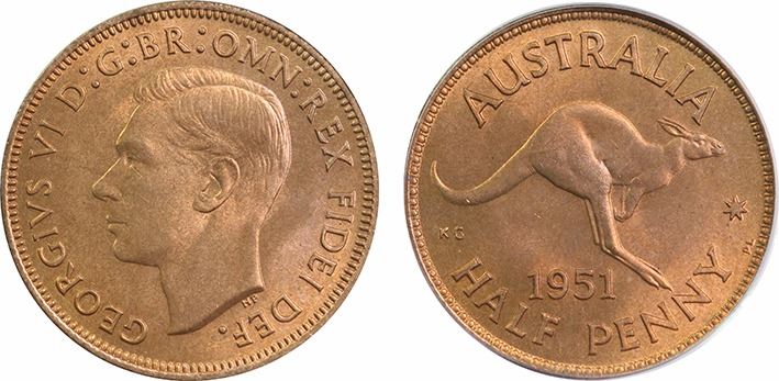 1951-PL Australian Half Penny - PCGS MS 65RB