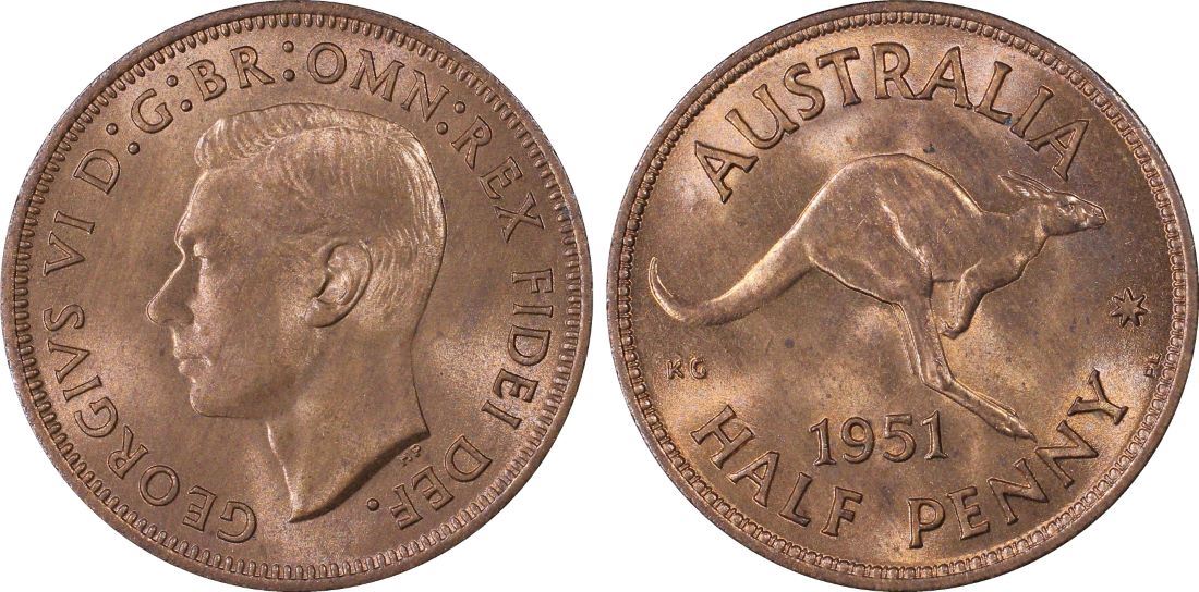1951-PL Australian KGVI Half Penny - PCGS MS64RD