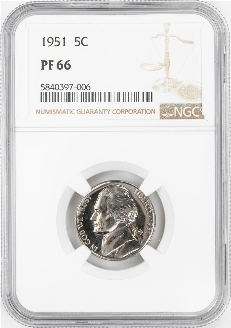 One 1951 Proof Jefferson Nickel Coin NGC PF66. NGC Certified.
