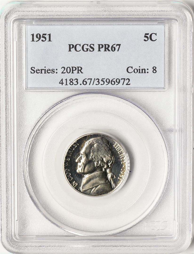 One 1951 Proof Jefferson Nickel Coin PCGS PR67. PCGS Graded.