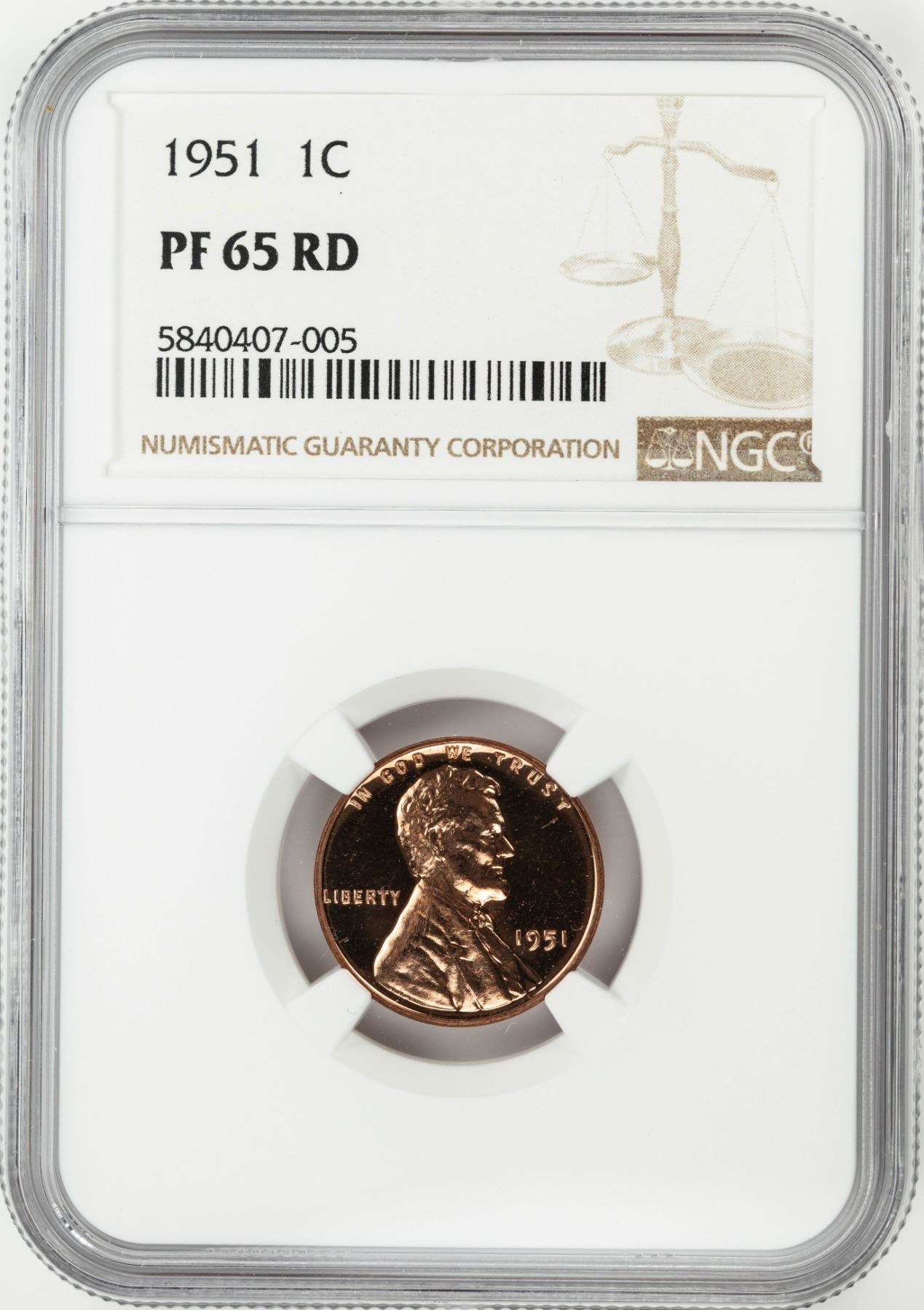One 1951 Proof Lincoln Wheat Cent Coin NGC PF65RD.