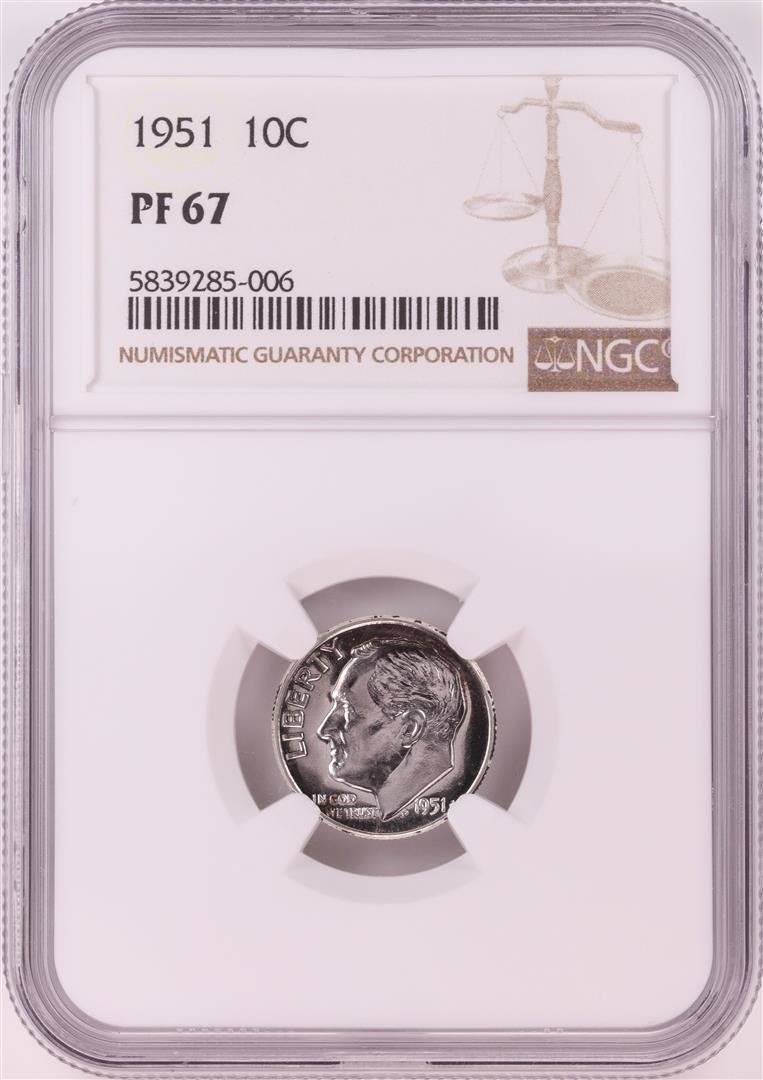 One 1951 Proof Roosevelt Dime Coin NGC PF67. NGC Certified.