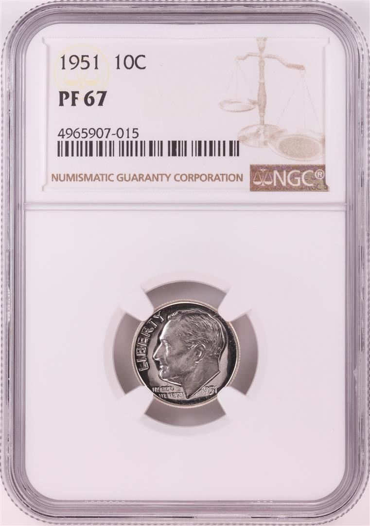 One 1951 Proof Roosevelt Dime Coin NGC PF67. NGC Certified.