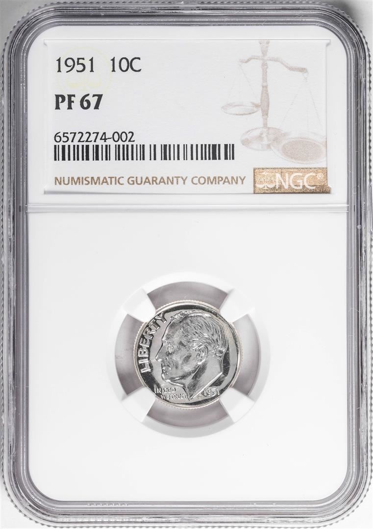 One 1951 Proof Roosevelt Dime Coin NGC PF67. NGC Certified.