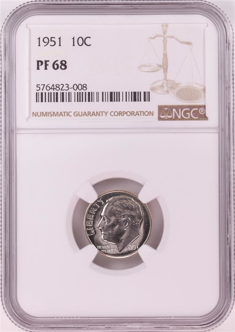 One 1951 Proof Roosevelt Dime Coin NGC PF68. NGC Certified.