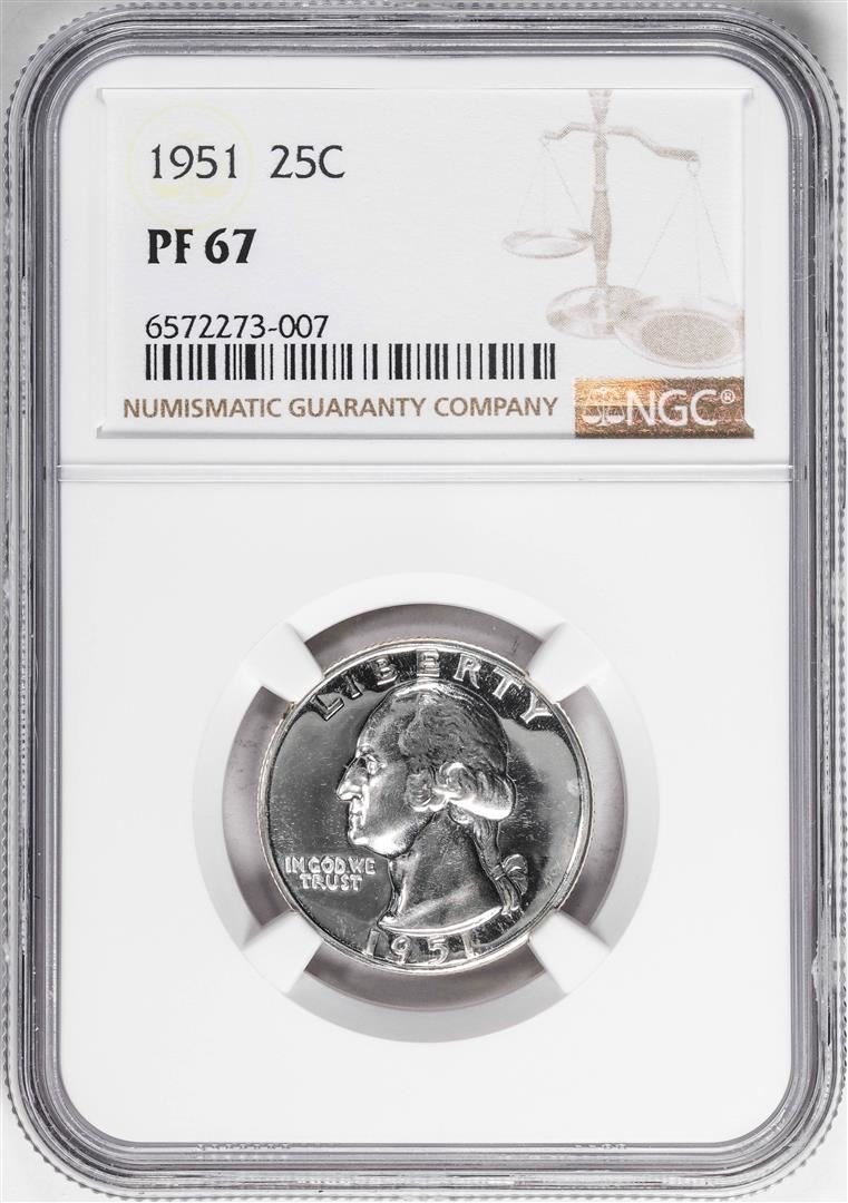 One 1951 Proof Washington Quarter Coin NGC PF67. NGC Certified.