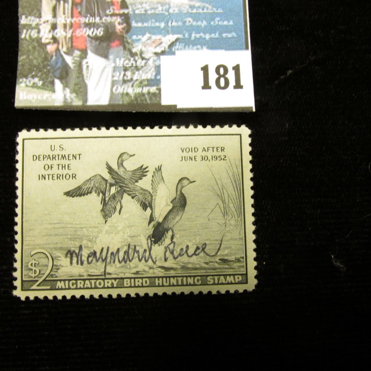 1951 RW18 U.S. Department of the Interior Migratory Bird Hunting Stamp, light hinge, signed by the a