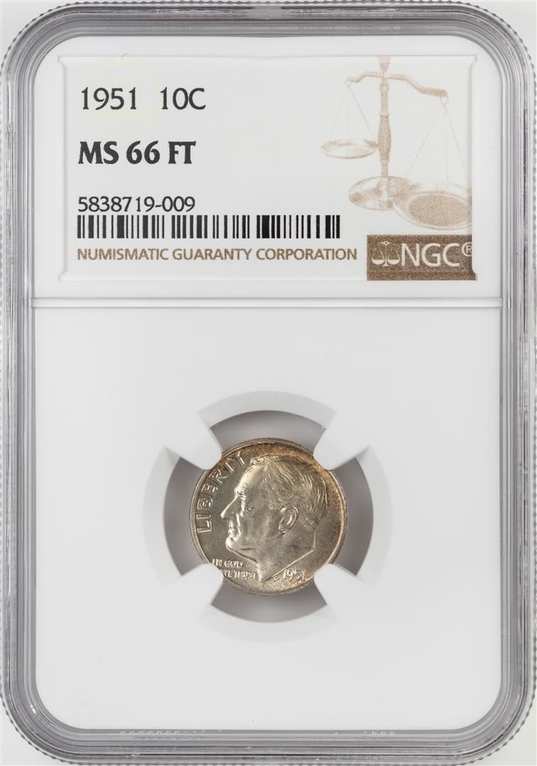 One 1951 Roosevelt Dime Coin NGC MS66FT. NGC Certified.
