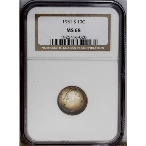 1951-S 10C MS68 NGC. This is a wonderful coin for the 1951-S[10C] MS68 NGC.